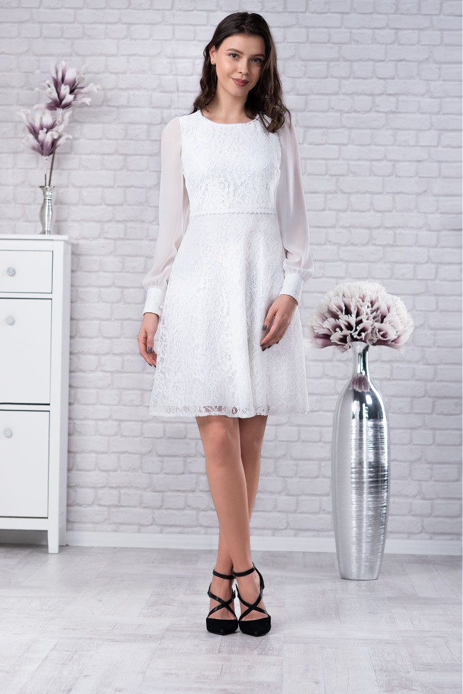 Atentie: rochia nu are manecile din voal, asa cum este prezentat in poza.ci are maneci aripioara, din dantela!