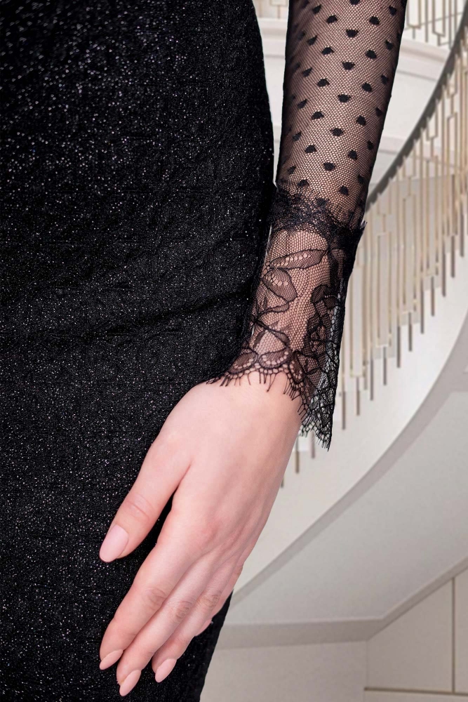 Maneci lungi, din tulle cu buline, cu terminatie din dantela