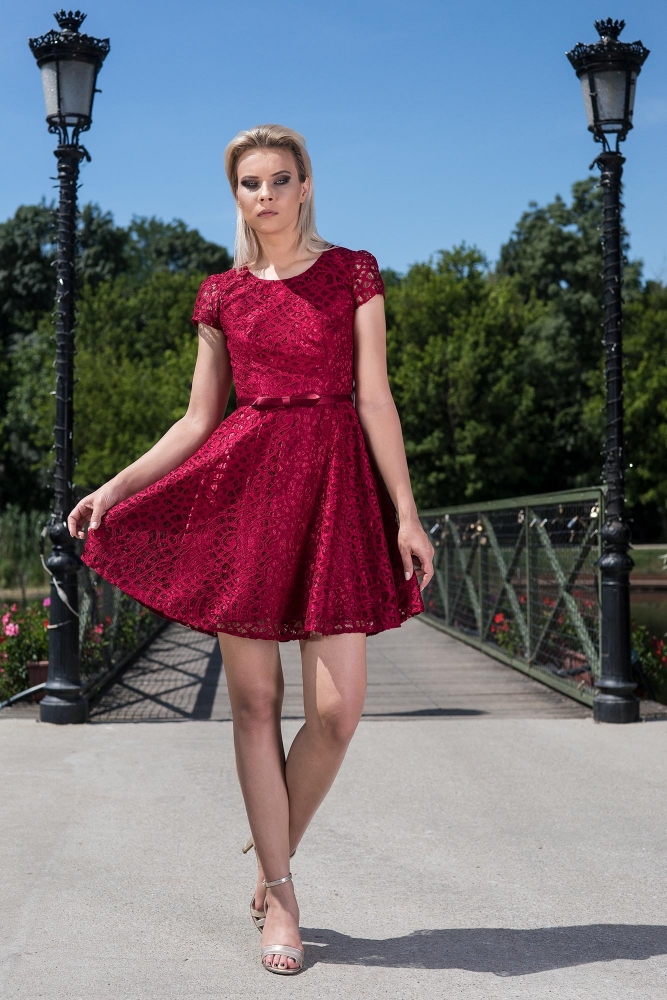 Curea imbracata in saten, cu fundita decorata cu dantela - inclusa.