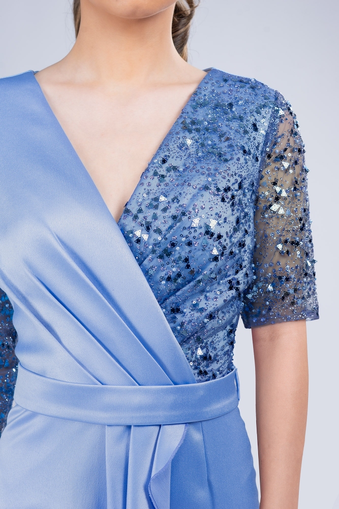 materiale: dantela cu perlute, paiete si glitter , tafta elastica