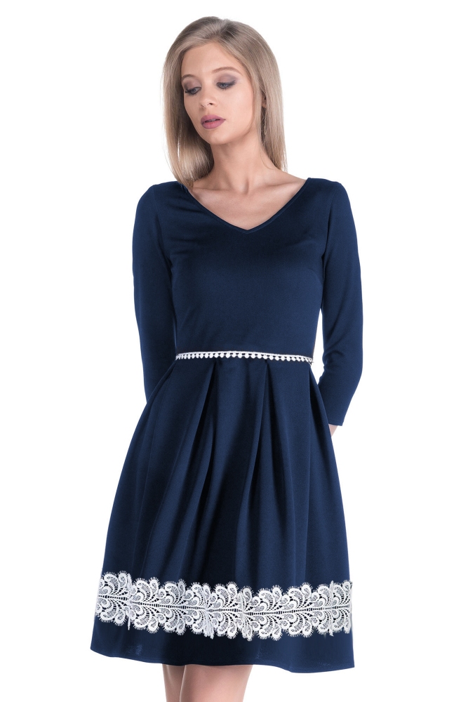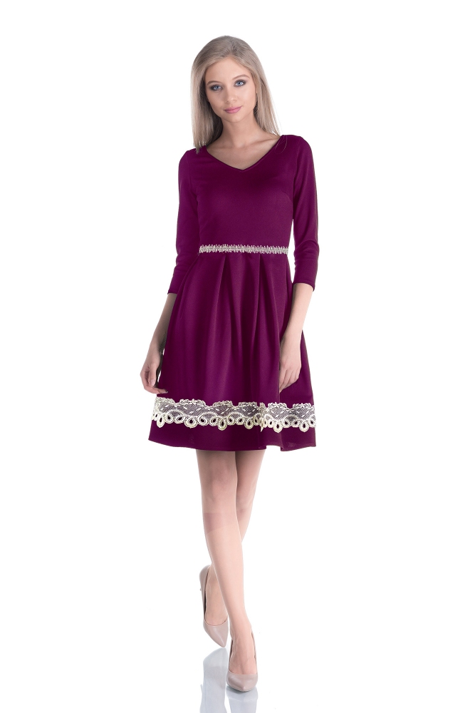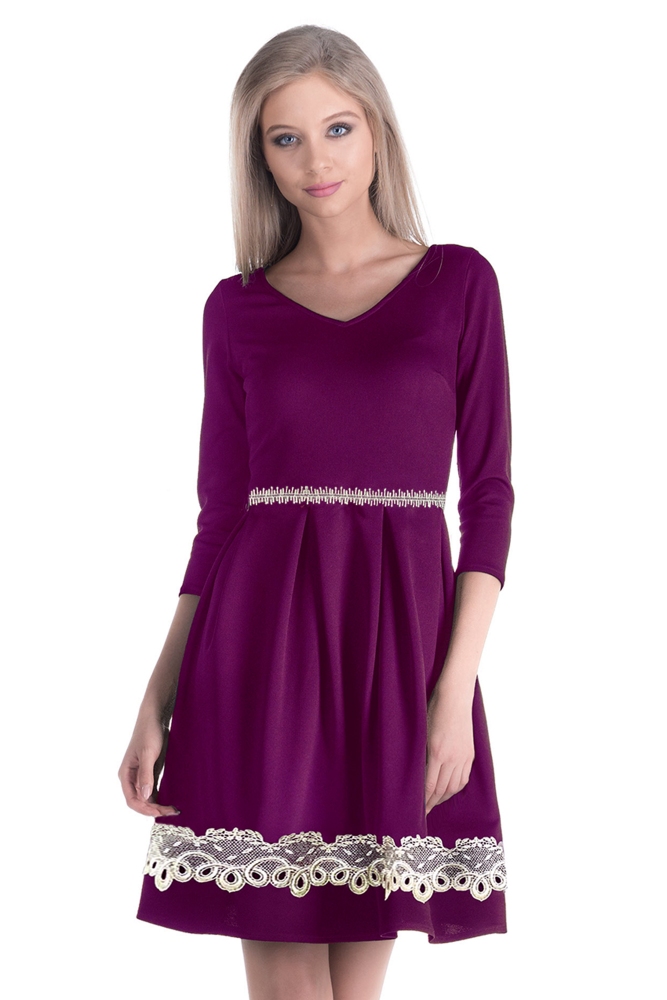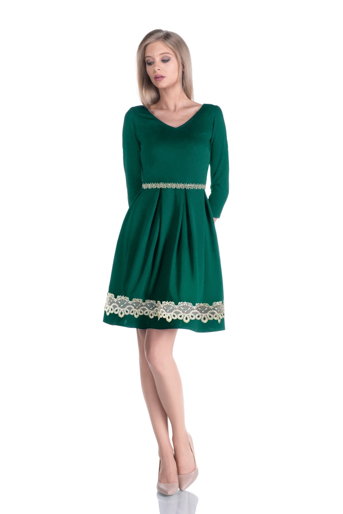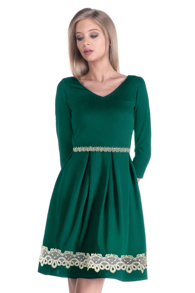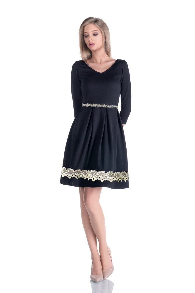 dantela aurie decorativa (cusuta) in talie si pe partea inferuoara a fustei